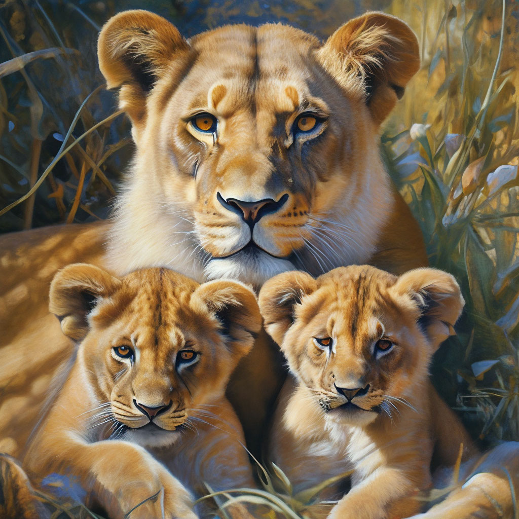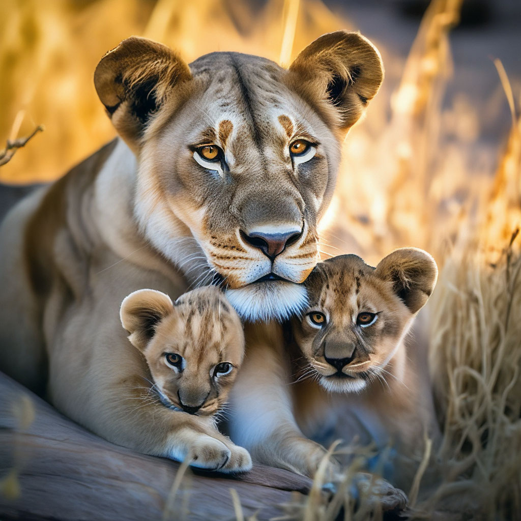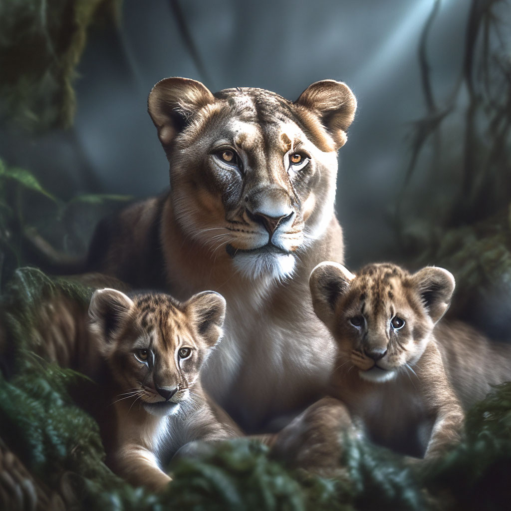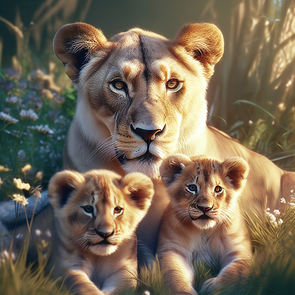 Львица с львятами