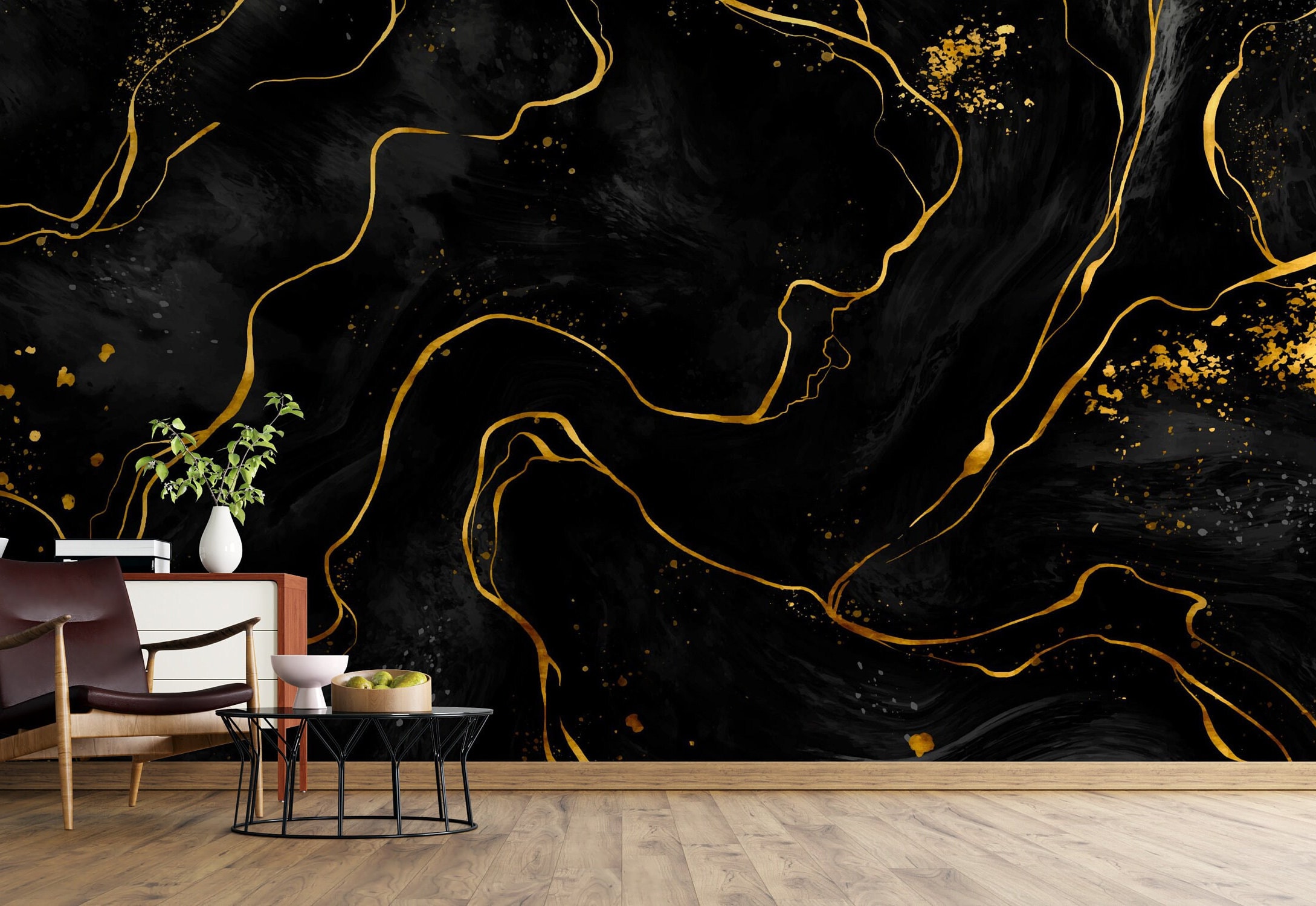Black and gold marble wallpaper