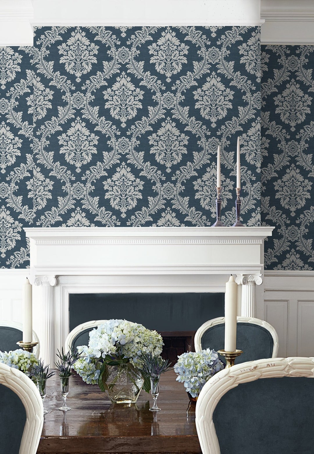 Blue damask wallpaper